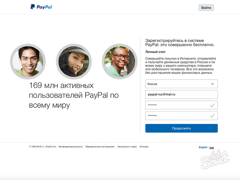 Personal — для людей, которые покупают и продают через Интернет. С помощью этой учетной записи вы можете легко оплачивать покупки на eBay и в интернет-магазинах, а также принимать любые платежи через PayPal (доступно только для России). Регистрация учетной записи, а также ее использование бесплатны. При оплате покупок комиссия PayPal с вас не взимается (комиссия взимается с получателя средств)